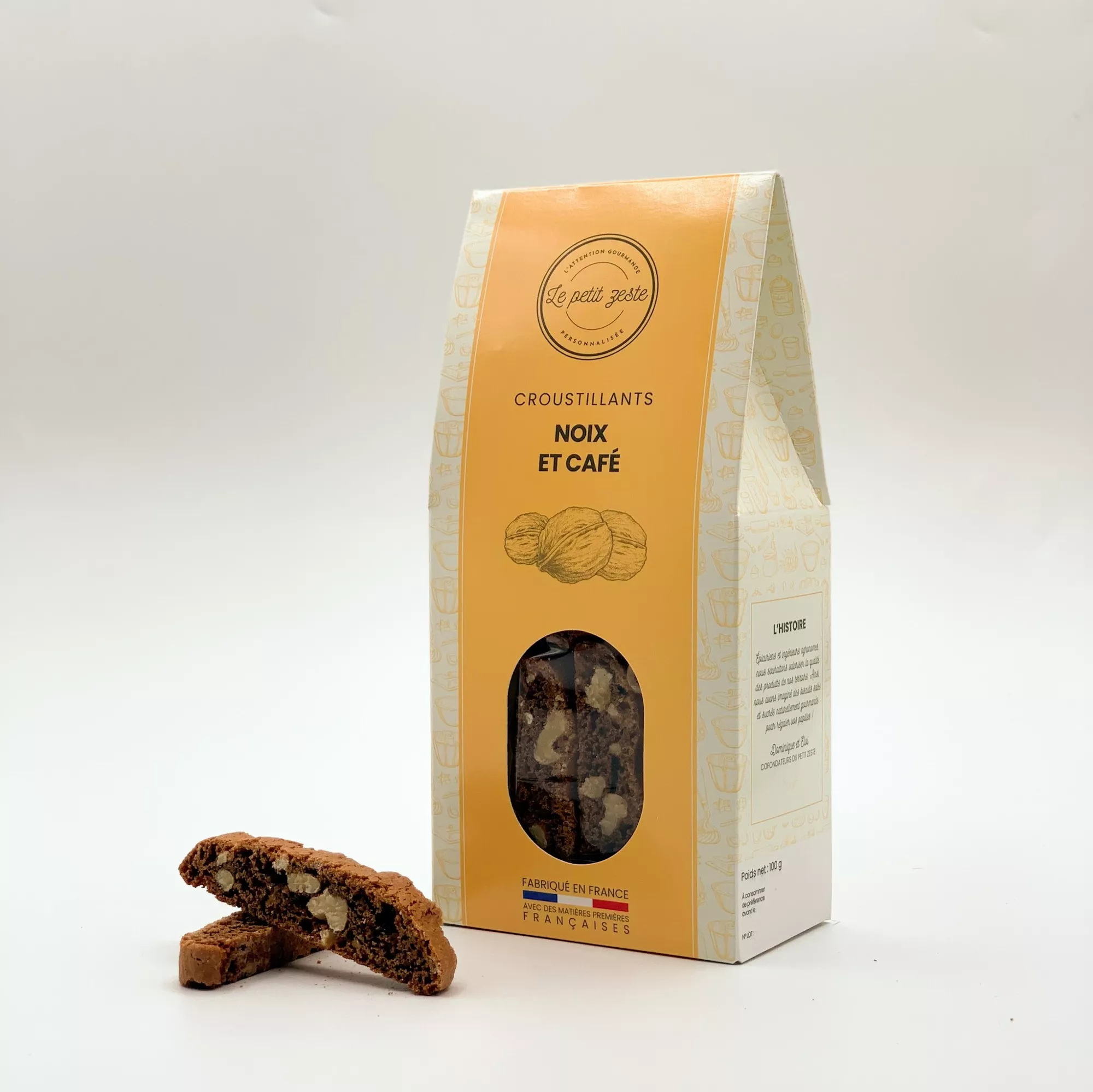 Avec 17% de noix et 3% de café, ces biscuits offrent un équilibre parfait entre intensité aromatique et gourmandise. Idéal pour accompagner un café, un thé ou une pause sucrée, ce biscuit artisanal séduira tous les amateurs de saveurs torréfiées et de croustillant.
