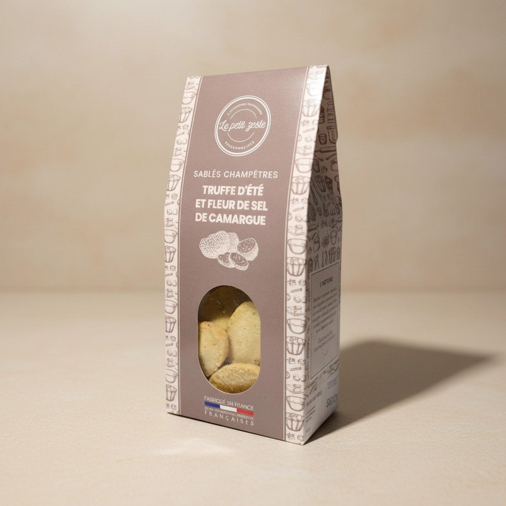 Découvrez des sablés apéritifs d’exception à la truffe d’été, une recette raffinée pensée pour les palais les plus exigeants. La truffe française (Tuber aestivum), présente en brisure pour un rendu visuel noble, dévoile son parfum délicat en fin de bouche, tandis que la fleur de sel de Camargue apporte une première touche subtile et équilibrée.