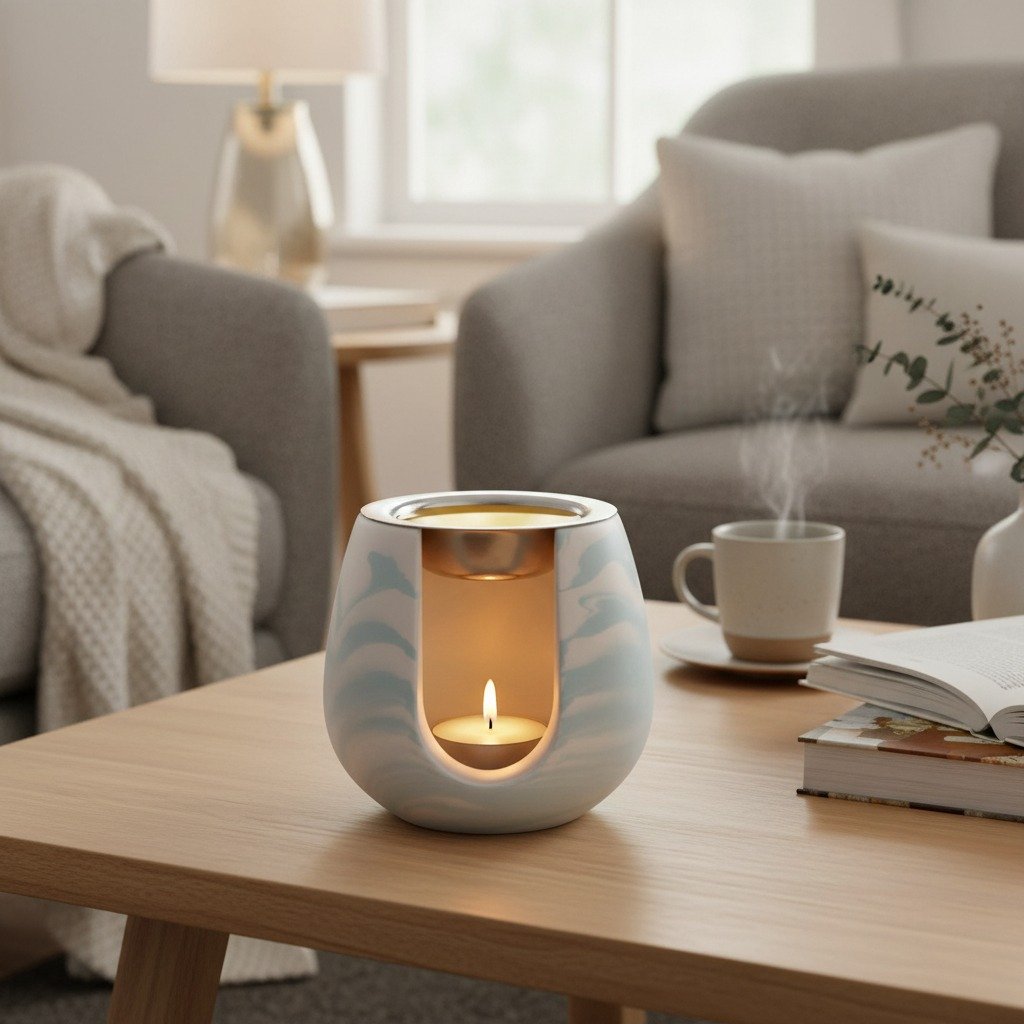 Apportez une touche de douceur à votre intérieur avec ce brûle-parfum en céramique marbrée pastel. Combiné à vos fondants, ils transforment instantanément votre intérieur en un cocon chaleureux, apaisant et délicatement parfumé.