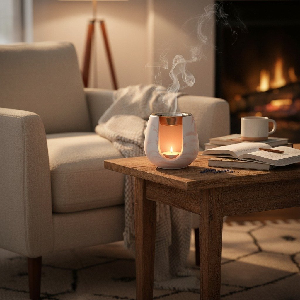 Apportez une touche de douceur à votre intérieur avec ce brûle-parfum en céramique marbrée pastel. Combiné à vos fondants,  ils transforment instantanément votre intérieur en un cocon chaleureux, apaisant et délicatement parfumé.