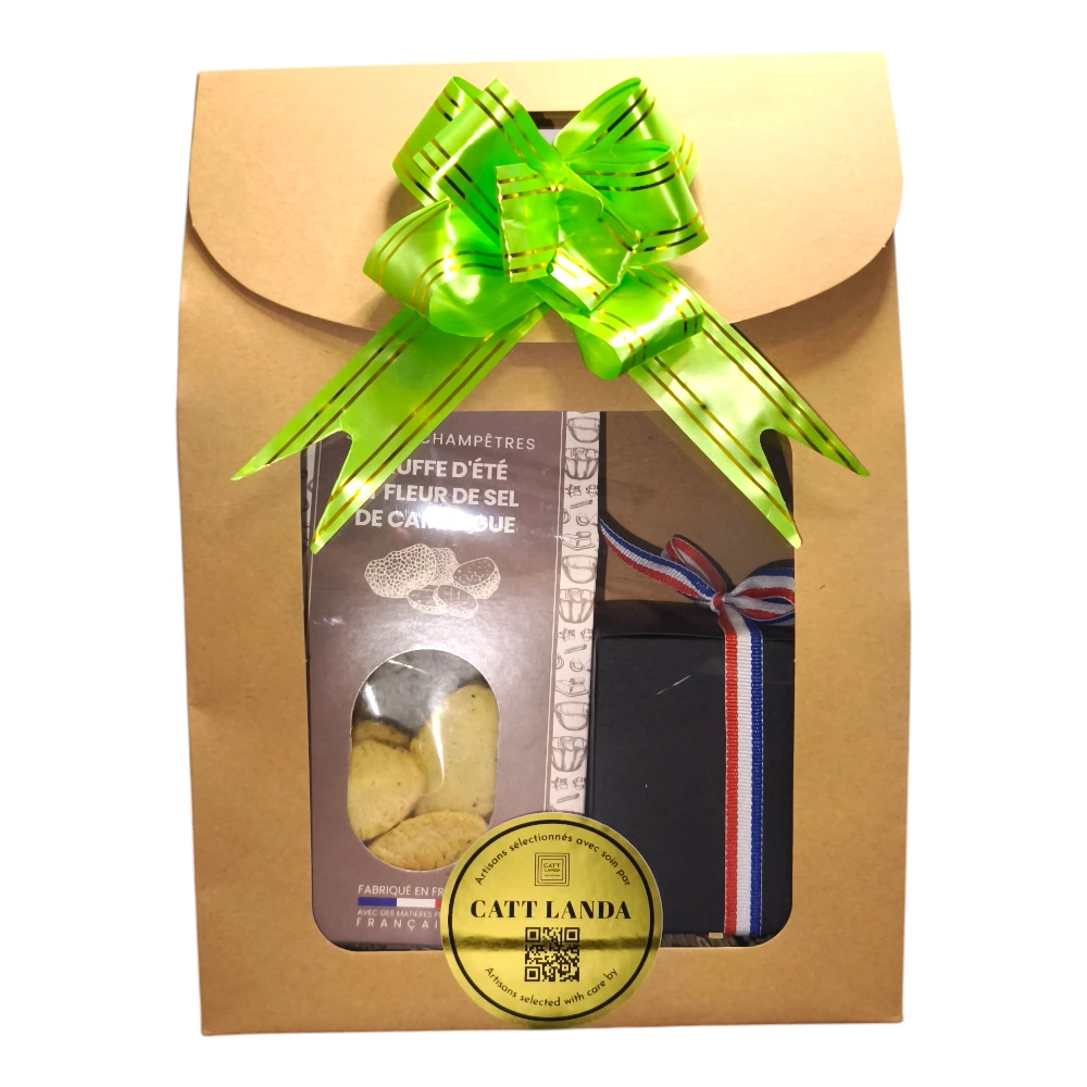 Les sablés champêtres à la truffe d’été et à la fleur de sel de Camargue apportent une texture croquante et un goût délicatement parfumé. La truffe d’été révèle des notes boisées élégantes, tandis que la fleur de sel équilibre parfaitement l’ensemble.