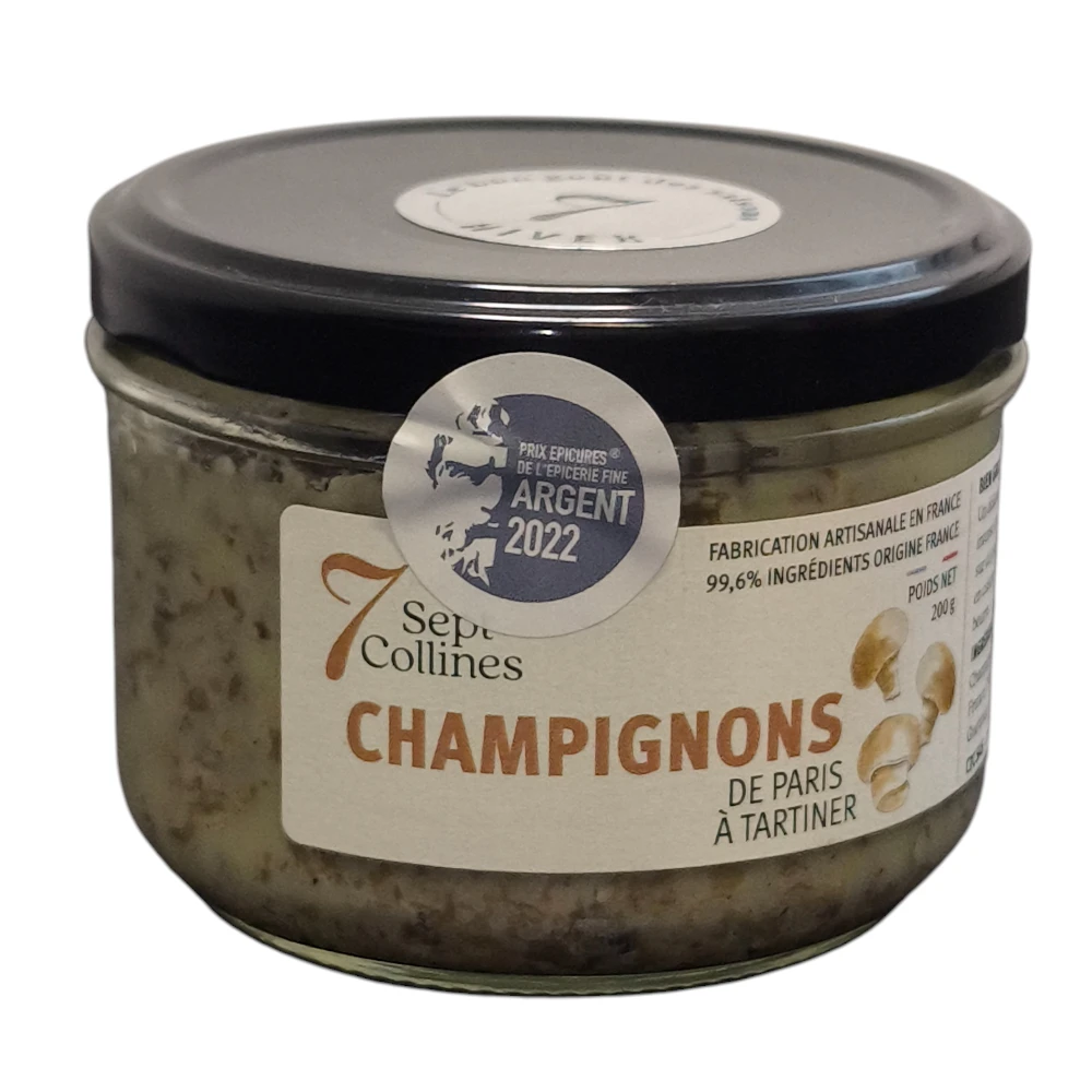 Le tartinable aux champignons de Paris offre une texture onctueuse et un goût authentique. Travaillé avec finesse, il accompagne idéalement les sablés ou se déguste sur un toast ou une tranche de pain frais.