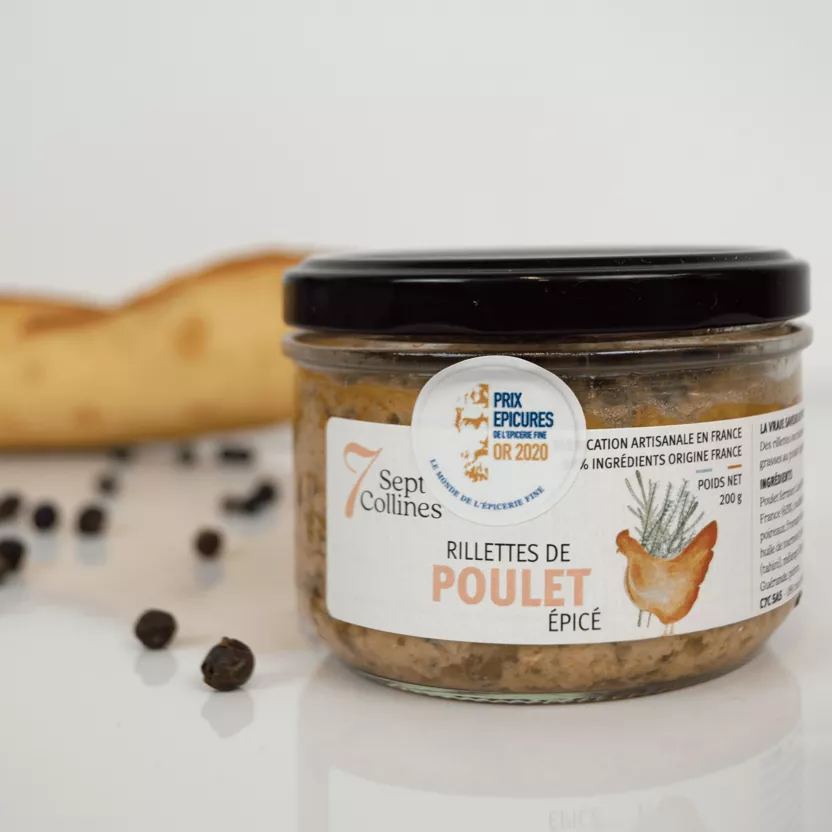 Récompensées par les Épicures d’Or 2020, ces rillettes de poulet signées Sept Collines incarnent l’authenticité et la gourmandise d’un apéritif à la française.