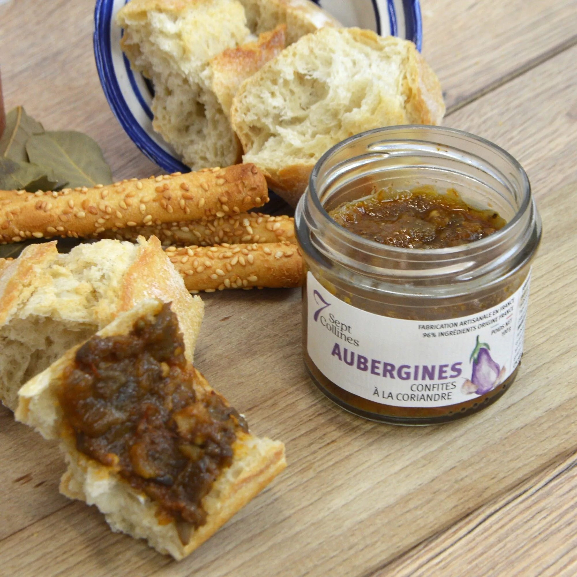 Préparé à partir d’aubergines confites, ce tartinable est délicatement relevé à l’ail et à la coriandre, pour une saveur équilibrée et chaleureuse. Les légumes, rigoureusement sélectionnés, sont d’origine France et cuisinés avec de l’huile d’olive, afin de préserver toute leur richesse aromatique.